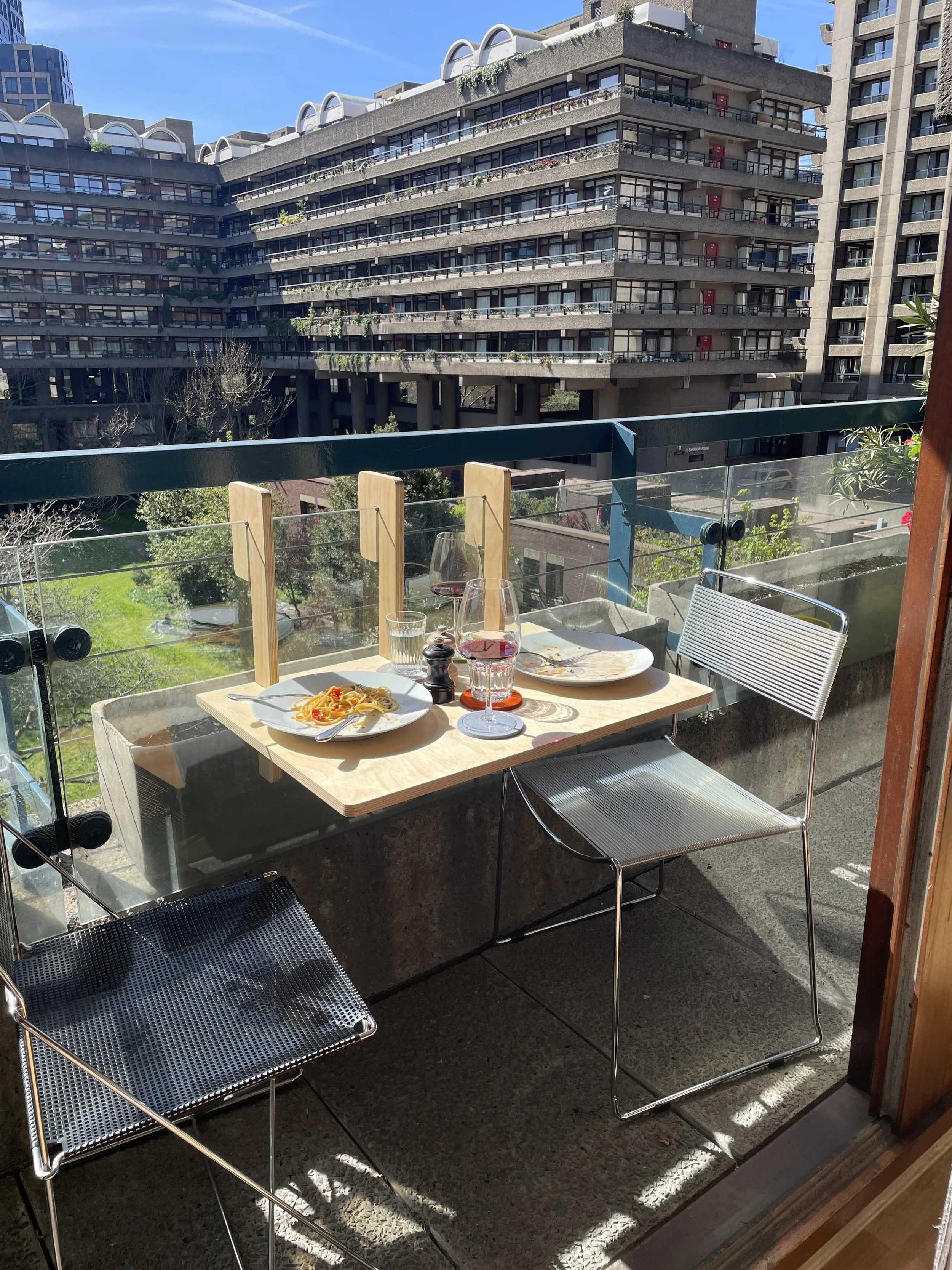 One of the many benefits of living in The Barbican is the fact that every flat has a balcony. The downside is that you’re not allowed to leave anything on your balcony. The dividing doors separating each flat’s outside space open to provide access for maintenance and window cleaning and - most importantly - the fire escape. Hence a table permanently on the balcony is verboten.
