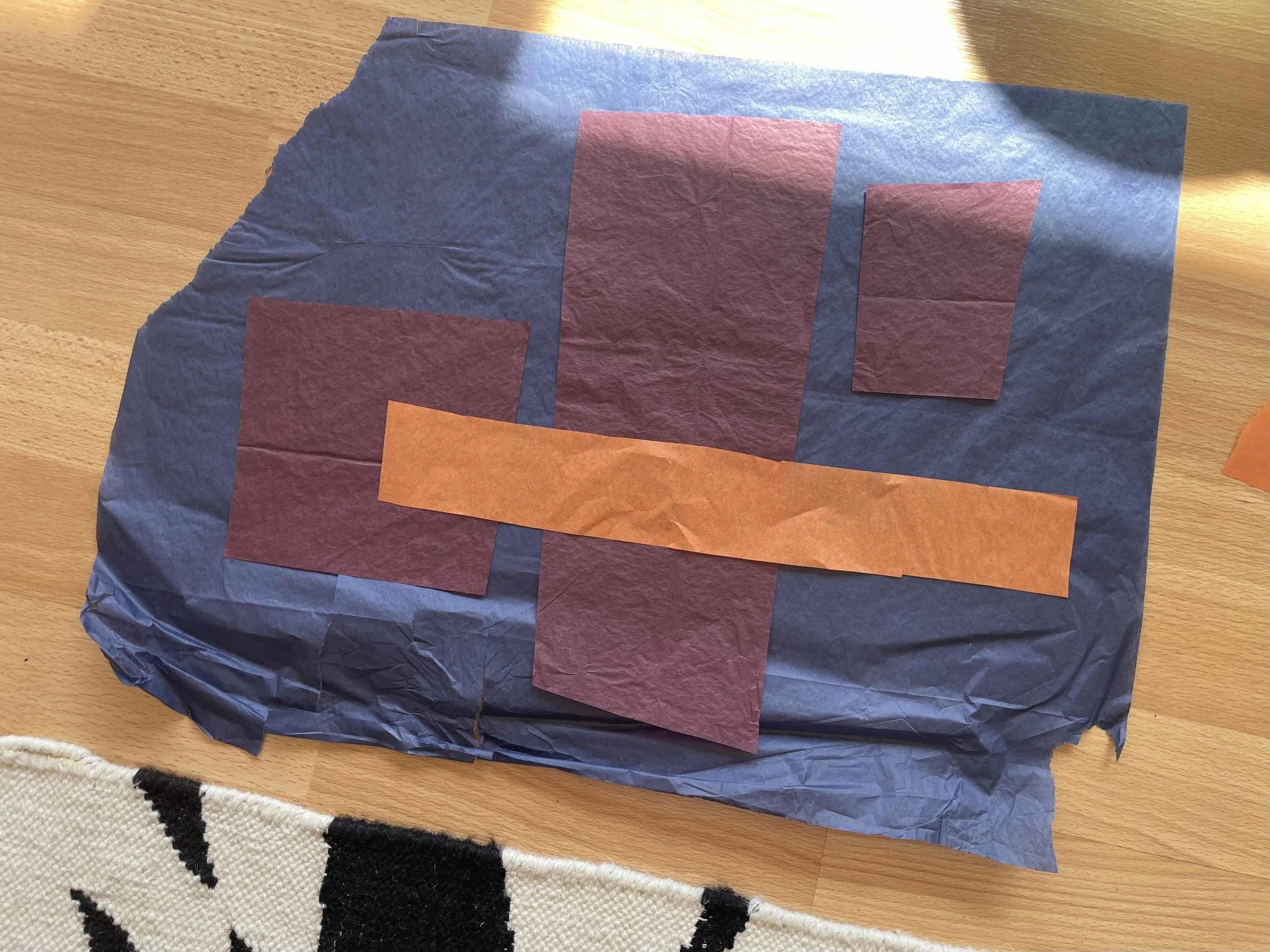 Many of the exercises that he proposes use sheets of coloured paper. Being impatient I didn’t want to wait for Cass Art to open so used what I had in the flat: numerous sheets of coloured tissue paper from a previous project. (More on that some other time.)