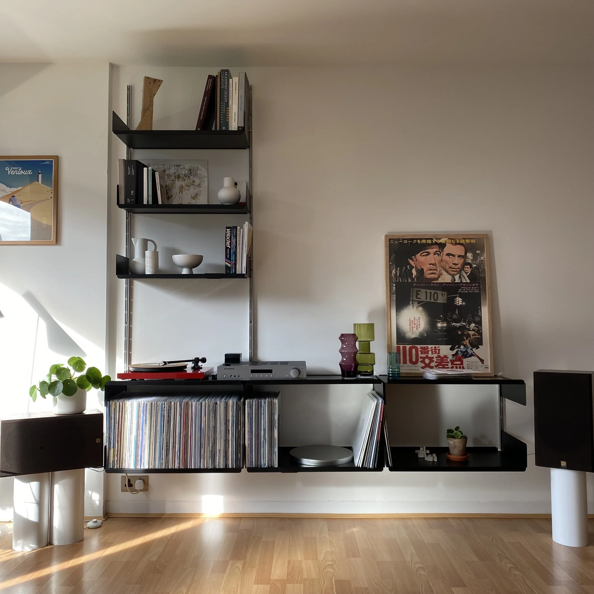 I added this new shelf on the left a couple of years after installing the original configuration. Because records, obvs.